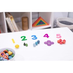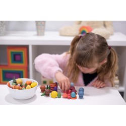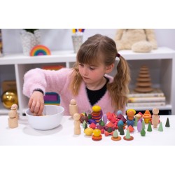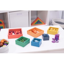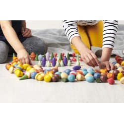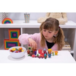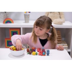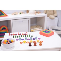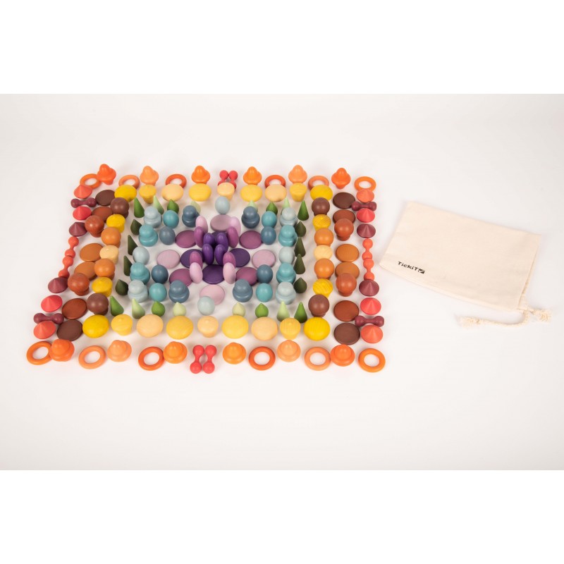 Chaque forme de trésor se décline en 3 nuances de 7 couleurs organiques symbolisant les caractéristiques émotionnelles et les sens. Il existe deux versions de couleurs de champignons / nelsons et de pierres / jetons. Les trésors stimuleront l'imagination, engageront la logique, découvriront la capacité créative, développeront la coordination et amélioreront la motricité fine. Utilisez-le pour créer des images et des histoires, vous entraîner à compter et à trier, concevoir des modèles et des séquences. Rouge = force, énergie, amour Orange = créativité, conscience de soi, transformation Jaune = sagesse, apprentissage, bonheur Vert = guérison physique, nature, attention Bleu = guérison émotionnelle, calme, paix intérieure Violet = spiritualité Marron = stabilité, confort • Complète nos gammes Rainbow Wooden Loose Parts & Architect. • Nous ne blanchissons pas notre bois avant l'application de la couleur, ce qui met en valeur les caractéristiques variées et fascinantes du matériau naturel. Prend en charge les domaines d'apprentissage suivants : • Développement physique - habiletés motrices • Développement personnel - jeu sensoriel, collaboratif • Arts expressifs et conception - jeu imaginatif • Comprendre le monde - couleur • Mathématiques - compter et trier • Mathématiques - motif